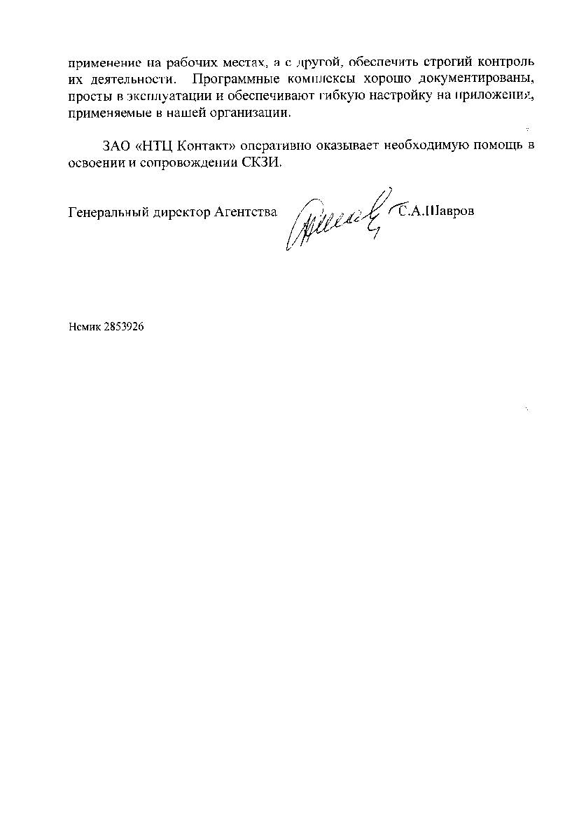Положительный опыт сотрудничества наших организаций является основанием рекомендовать ЗАО «НТЦ КОНТАКТ» как надежного поставщика продуктов и услуг в сфере защиты информации.
